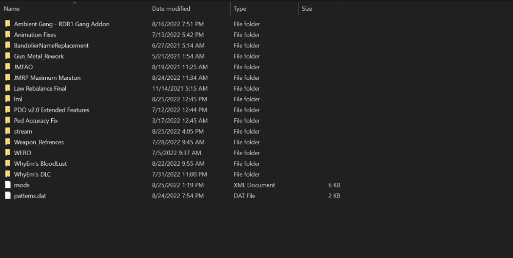 Anything I put into stream files don't show in-game, neither is WhyEms DLC, before you ask, no, I don't have a cracked version of Red Dead I bought it legally. The first screenshot is what is inside of my stream folder, the second is what my LML mod manager is looking like, I don't know whether the stream files are supposed to appear in the mod manager or not. The final image is what is inside of the lml folder located inside of RDR2 directory. Any help would be appreciated for I've been stuck on this for the past few days.