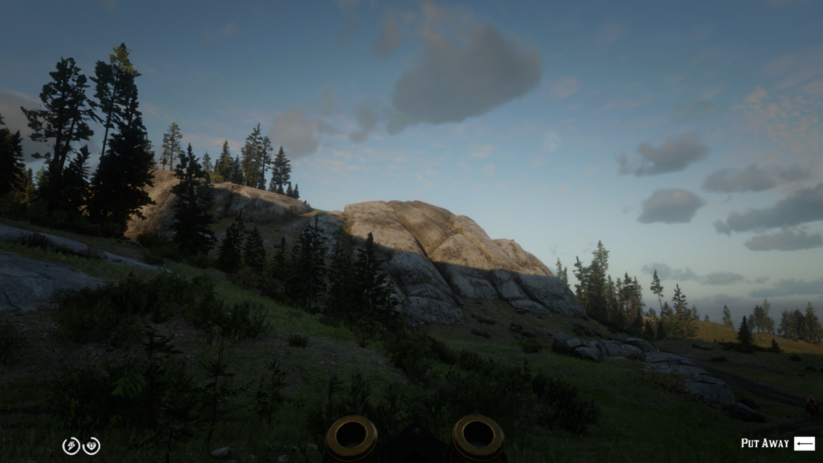 11. Blurry and low-res bushes on the right half of the screenshot, whilst the bushes that're further away from me on the left half of the screen are high quality. This also affects trees, sadly. On the boulder just over the shadow line, the textures are noticeably low-res, the boulder on the left of the screenshot also has the same low-res quality, but when I move forward just a little bit, the textures on that boulder suddenly pop-in and become high-res. Look at how broad of a difference in resolution and detail there is between the center of this plateau, and the top of it. This issue also effects building draw-distance, I notice that buildings have a checkerboard-like pattern from about 15 meters and farther distances, if I turn off all anti-aliasing all the textures have a shimmering effect. I forgot to mention that there's a low shadow-filtering LOD, these issues began in mid-April of 2021, I don't have a clue as to how this could even be a gradual worsening in quality, I had started playing this game since 2020. My settings: Texture Quality: Ultra Anisotrophic Filtering: 16x Lighting Quality: Medium Global Illumination: High Shadow Quality: High Far Shadow Quality: High SSAO: Ultra Reflection Quality: Medium Mirror Quality: Ultra Water Quality: Medium Volumetrics: Medium Particle Quality: Ultra Tesselation: Ultra TAA: Medium FXAA: ON MSAA: OFF Near Volumetric Quality: Low Far Volumetric Quality: Medium Volumetric Lighting Quality: High Unlocked Volumetric Raymarch Resolution: On Particle Lighting Quality: Medium Soft Shadows: High Grass Shadows: Medium Long Shadows: On Full Resolution SSAO: Off Water Refraction Quality: Medium Water Reflection Quality: High Water Physics Quality: High TAA Sharpening: 27/100 Motion Blur: Off Reflection MSAA: X2 Geometry Level of Detail: 3 of 5 Grass Level Detail: 4 of 10 Tree Quality: High Parallax Occlusion Mapping Quality: Ultra Decal Quality: Ultra Fur Quality: High